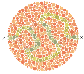 Kırmızı-yeşil renk körlerinin çoğu iki X işareti arasında bir yol görür ve izlerler. Normaller ve total renk körleri böyle bir yol bulamazlar.